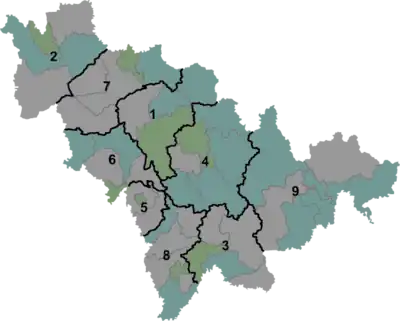 Disse 9 enheder er igen inddelt i 60 enheder på amtsniveau (20 distrikter, 20 byamter, 17 amter og 3 autonome amter). Disse er igen inddelt i 1.532 enheder på kommuneniveau.