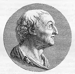 ![]() Johan Samuel Augustin. Portræt fra kataloget over hans bogsamling, stukket Johan Frederik Clemens. | |
