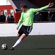 ![]() Jonas Flindt Rasmussen spiller her for B36 Tórshavn i 2012. | |||