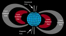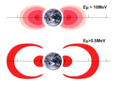 - March 8, 2005, NASA: NASA Finds Lightning Clears Safe Zone in Earth's Radiation Belt Citat: "...Because the radiation belt particles are electrically charged, they respond to magnetic forces. The particles spiral around the Earth's magnetic field lines, bouncing from pole to pole where the planet's magnetic field is concentrated..."