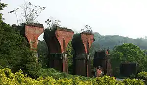 ![]() Resterne af den kollapsede Longteng bro i Sanyi, Miaoli. | |