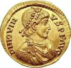 ![]() Guldmønt (Solidus) med portræt af Jovinus. | |