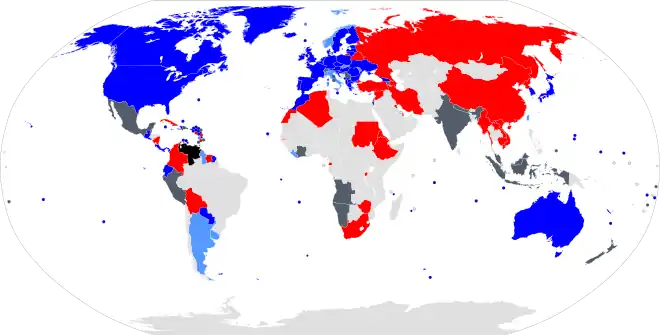 I februar 2019 anerkendte USA og ca. 50 allierede, bl.a. Danmark,[6] Guaidó som midlertidig præsident for Venezuela.[7][8] Det drejer sig hovedsageligt om de vestlige lande samt en lang række latinamerikanske lande. De vestlige lande der støtter op omkring Guaidó er USA og de fleste lande i Europa.[9][10] Dette bestrides af en række lande anført af Rusland og Kina som anerkender den hidtidige præsident Nicolás Maduro.