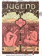 Jugend (tysk: ungdom) angiver, at der er tale om en ny og ung stil. Jugendstilen er opkaldt efter tidsskriftet Jugend, der argumenterede for stilen fra 1896 og med karakteristiske vignetter tegnet af O. Eckmann.[1] Jugendstilen var imod historicismen og dens efterligninger. Den ville forene arkitektur og dekorativ kunst og lægger vægt på god udførelse, ægte materialevirkninger og former og dekoration baseret på slyngede, stiliserede, dekorative stregmønstre inspireret af naturens former fx tulipaner og åkander.