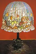 Paris metrostation af Hector Guimard (1900); Plakat af Alfons Mucha (1897); Lampe af Louis Comfort Tiffany (1900-1910); Møbel af Louis Majorelle; Interiør fra Hôtel Tassel af Victor Horta (1894) Et korset fra Paris og nogle blomster i Jugendstil  | ||||||||