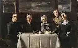 I baggrunden af Anchers billede ses hans triptykon Brænding mod kysten fra 1884/1884, som stadig hænger i spisesalen.