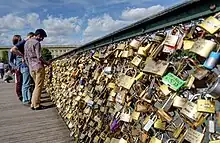 - I Paris har det lokale byråd i maj 2010 udtrykt stigende bekymring over det voksende antal kærlighedslåse på Pont des Arts, Passerelle Léopold-Sédar-Senghor og Pont de l'Archevêché-broerne: "De udgør et problem for bevaringen af vores arkitektoniske arv". Senere i 2010 forsvandt alle kærlighedslåsene, hvilket byens myndigheder benægtede ethvert kendskab til. På Pont de l'Archevêché-broen kom der dog meget hurtigt nye kærlighedslåse op igen.[4] Borgmesteren for 6. arrondissement frygter, at vægten af låsene kan ødelægge broerne, og at stykker af gelænderet kan falde ned fra broen.[10]