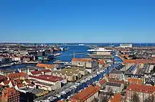 Københavns Havn set fra spiret på Vor Frelsers Kirke, marts 2013.