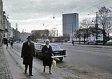 Byudviklingen blev overvejet og mundede ud i "fingerplanen" fra 1947 som blev brugt til planlægning af bl.a. den offentlige trafik. Ideen med fingerplanen var at byudviklingen primært skulle foregå langs s-togslinjerne med grønne områder imellem s-togs"fingrene". I takt med at bilen blev mere udbredt, blev ideen om et København bygget op omkring fingerplanens ideer om den kollektive S-togstrafik til at blive udvandet. Nogle forstæder voksede op væk fra S-togsnettet. I 1960'erne syntes udviklingen i Københavns Kommune at være gået nærmest i stå, mens man i forstadskommunerne byggede på livet løs. Gladsaxe Kommune under Erhard Jakobsen og Albertslund er eksempler på denne udvikling i Københavns forstæder.[105] Også mod vest skete der store udvidelser af byen og landsbyer som Glostrup og Brøndbyøster blev nu også en del af København.[97] Den stigende bilisme medførte også at Langebro ikke kunne klare trafikken og måtte udbygges i 1953. Ligeledes blev flere af indfaldsvejene mod de centrale dele af København omdannet til motorveje. Fra 1968 blev motorring 3 løbende taget i brug.[106] Delvist som konsekvens af den øgede bilisme blev sporvognene nedlagt i 1972 og erstattet med busser.[107][108]