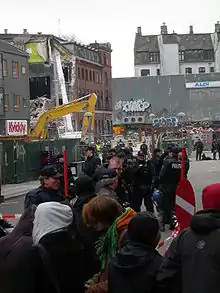 Bevægelsen omkring Ungdomshuset på Jagtvej gav også i denne periode anledning til uro. I 2007 ønskede en ny ejer (Faderhuset) at tage sin ejendom i besiddelse og politiet ryddede huset. Dette medførte voldsomme uroligheder, hvilket ikke var set lignende siden urolighederne den 18. maj 1993 i forbindelse med en EU-afstemning. Efter en del politisk debat lovede overborgmester Ritt Bjerregaard at lave et nyt hus til de unge. Denne beslutning blev stærkt kritiseret.[117] Efter etableringen af det nye hus ebbede demonstrationerne langsomt ud, og nogle år senere holdt de helt op. I 2008-2012 var der flere opgør mellem diverse kriminelle grupperinger, hvor unge indvandrere og rockere stod på hver sin side i hvad, der blev kaldt Bandekrigen.[118]