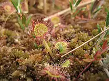 - Soldug (Drosera) har langstilkede kirtler, der frigiver en klistret enzymholdig væske, som nedbryder byttet.