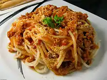 Kødsovs kaldes også bolognesesauce (idet den stammer fra Bologna i Italien), og den spises især med spaghetti eller anden pasta eller ris.[1][2]