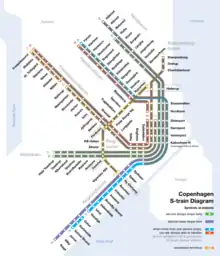 | Navn | Fork. | km | Linjer | Åbnet | S-tog | Kommentarer |