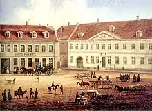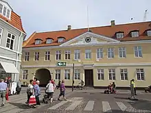 Den gamle nyklassicistiske rådhusbygning har en simpel gul facade med trekantede frontoner. To af Statius von Dürens terrakottarelieffer fra renæssancebygningen er opsat på hver side af indgangen. Bygningen indeholder en hall og borgmesterens kontor.