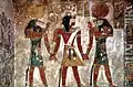 Den 188 meter lange grav er smukt dekoreret. Gravkammeret er en otte-søjlebårne hal, hvori den røde sarkofag var.