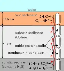 En kabelbakterie er filamentøs bakterie, som leder elektricitet over afstande omkring 1 cm i sediment og ved grundvandsreservoirer.[1][2] Kabelbakterier kobler reduktionen af oxygen[2] eller nitrat[3] ved sedimentets overflade til oxidation af sulfid[2] i det dybere, iltfrie, sedimentlag.