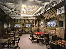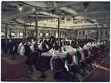 Spisesalonen, der havde kapacitet til at bespise alle førsteklasse passagerer på én gang, var indrettet gennem flere dæk og havde en kuppel i toppen. Rummet havde søjler og stolene fastgjort til dækket, som var normalt for oceanlinere på den tid.[23] Rygesalonen, hvor mændene kunne trække sig tilbage, var indrettet som en traditionel tysk kro.[24]