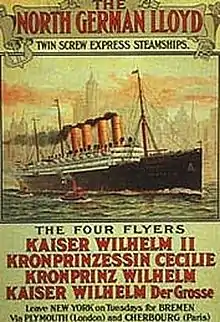 For yderligere at befæste sin position som det ledende rederi lod NDL bygge yderligere tre søsterskibe til Kaiser Wilhelm der Grosse; SS Kronprinz Wilhelm (opkaldt efter Kronprins Wilhelm), SS Kaiser Wilhelm II og SS Kronprinzessin Cecilie.[13] De Blå bånd blev holdt af SS Kaiser Wilhelm II fra 1903-07 og NDL markedsførte de fire oceandampere som "The Four Flyers" med reference til skibenes hastighed.[14]