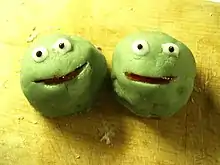 Kagen er omtrent på størrelse med en lille tennisbold, men dette afhænger selvfølgelig af bageren selv. Den er udformet som et rundt frøhoved - typisk af grøn marcipan - med et snit, der markerer en åben mund.