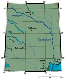 Floden begynder i Kebnekaise-massivet i Kiruna kommune og løber mod sydøst gennem landskabet Lappland. Ved Tärendö drejer floden mod syd og løber gennem Norrbotten. Den munder ud i Botniske Bugt sydøst for Kalix. De vigtigste bifloder er Kaitumälven, Tärendöälven og Ängesån.