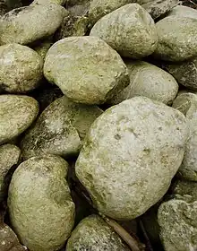 Ved brænding af kalkrullesten, der består af kalciumkarbonat, CaCO3, ved 1200 grader frigives kuldioxid, CO2, fra stenene.[3] Den efterfølgende læskning af de brændte sten foregår ved tilsætning af vand, hvorved der sker en kemisk reaktion under varmeudvikling, som omdanner den brændte kalk, kalciumoxid, CaO, til kalciumhydroxid, Ca(OH)2.[3]