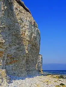 Den samme kalkformation dukker igen op til overfladen i det sydøstlige Danmark i form af Møns Klint og ligeledes mod nordvest i Danmark ved Ålborg.[5] Kalkformationerne ved Ålborg danner grundlag for Ålborg Portlands cementproduktion.[5]
