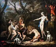 Diana og Kallisto, maleri af Sebastiano Licci (mellem 1712-1716). Maleriet viser den kyske Dianas afsløring af Kallistos graviditet med Zeus.