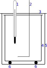 Et kalorimeter består af et termisk isoleret system som ikke udveksler varme med omgivelserne (for eksempel en termokande) med en kendt varmekapacitet (). Varmen () som frigives eller optages under den undersøgte reaktion resulterer i en temperaturændring () af kalorimeteret som er proportional med kalorimeterets varmekapacitet. Ved at måle temperaturændringen kan mængden af varme som optages/frigøres beregnes med
