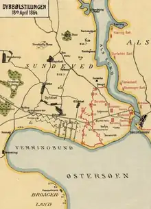 Skanserne var placeret således med Vemmingbund ud for den danske venstre flanke og Als Sund ud for højre flanke: