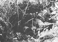 ![]() 75 mm haubits fra 11. marineregiment støtter operationen mod japanske styrker ved Koli Point. |