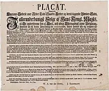 Kanceliplakat med bekendtgørelse af kongelig beslutning om bortauktionering af Fanø