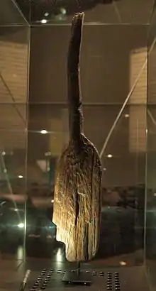 Paddel dateret til omkring 6.200 f.v.t. på Archäologisches Museum Hamburg.