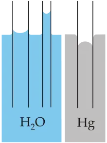 Kapillærkraft er en naturligt fysisk fænomen, som trækker væske ind i kapillære gange. I det smalle rør vil vand samlet set øge sin overflade, mens kviksølv vil gøre det modsatte. Derved opstår en forskel til omgivelserne i lufttryk pr. arealenhed. I vands tilfælde vil den større overflade føre til, at vandet 'trækkes' indad eller opad.