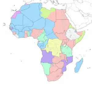 - Ruanda-Urundi (bestående af de moderne lande Rwanda og Burundi, 1922–62)