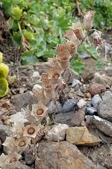 Frugten hos Almindelig Bulmeurt er en buddike siddende inden i det tørre bæger.