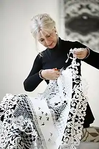 | “ | Det er to grunnleggende forskjeller på maleri og papirklipp, eller psaligrafi, som det også kalles. Den ene er at når jeg lyssetter papirbildene, blir skyggene de skaper en del av kunstverket. Den andre forskjellen er at hvis en maler gjør en feil, kan han male over den. Hvis jeg klipper feil, er hele verket ødelagt og jeg må starte forfra igjen. Nøyaktigheten er også viktig. Det handler om brøkdeler av en millimeter for at figurene skal bli riktige." Karen Bit Vejle[5] |