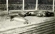 ![]() Karibisk munkesæl i New Yorks Akvarium, ca. 1910 | |