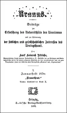 Det første og eneste nummer af Uranus (udgivet i januar 1870), et tidsskrift, som var tænkt at blive periodisk.