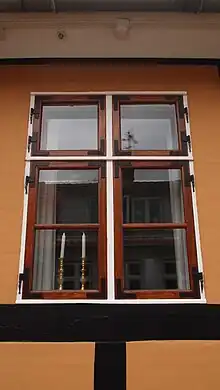 Hele anlægget har to porte til baggården.[1] Bygningen er i dag gulkalket med rødt tegltag. Taget er et sadeltag bortset fra på karnappen, hvor der er rundbuet.[1]