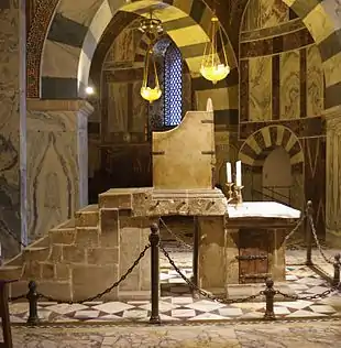 Kirkerummet ved karl den Stores palads i Aachen. I forgrunden ses kejserens trone.