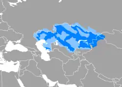 | Talt i: | Kasakhstan, Kina, Mongoliet, Tadsjikistan, Turkmenistan, Tyrkiet, Ukraine, Usbekistan, Rusland, Iran | |