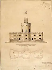 Planerne blev revideret af arkitekten og den øverste i flådens mekaniske stab Fredrik Blom. Tårnets proportioner blev ændret og der blev tilføjet et 20 meter højt rundt trappetårn; Kastellet med de to sidefløje til indkvartering, opførtes i rødt tegl på en høj sokkel af gråsten og med skydeskår på taget, mellem 1846-1848.