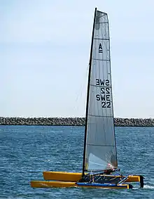 En Katamaran för tävlingssegling av typen A-Cat.