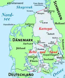 - Nudansk Ordbog (1993), 15. udgave, 2. oplag, København: Politikens Forlag, opslaget Kattegat.