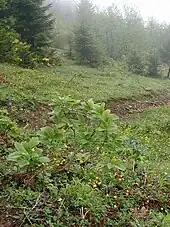 I den sydlige bjergkæde i Kaukasus finder man skove på nordvendte skråninger med svag hældning i 1.110-1.550 m højde. Her består jordbunden af en fugtig, men veldrænet brunjord, og skovene er domineret af orientalsk bøg. Arten optræder i samfund med bl.a. Acer trautveterii (en art i løn-slægten), avnbøg, firblad, almindelig gyldenris, almindelig mangeløv, rederod, Betula litwinowii (en art af birk), Corylus colchica (en art af hassel), enblomstret snylterod, guldazalea, Ilex colchica (en art af kristtorn), kaspisk eg, kaukasisk blåbær, klæbrig salvie, laurbærkirsebær, orientalsk bøg, pontisk dafne, Primula woronowii (en art af kodriver), skovbjergmynte, skovhullæbe, skovrørhvene, skovstar, skovstilkaks, skovlilje (flere arter), skovsyre, Sorbus subfusca (en art af røn), Spidsløn, storblomstret kulsukker, Tilia begoniifolia (en art af lind) og viol (flere arter)[2]