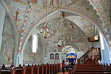 Kirken har en sengotisk fløjaltertavle, og prædikestolen er dateret 1586.
