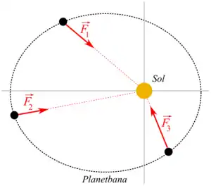 hvor er planetens positionsvektor med udgangspunkt i Solen, og er accelerationen.