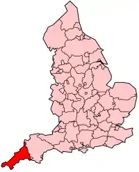 På den sydvestligste del af Cornwall ligger Land's End, som er Englands vestligste punkt.