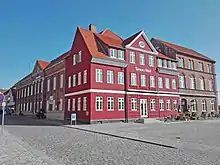 Byen har 6 gader, 3 porte, 172 huse assesurerede for 35,700 rigsdaler foruden de publique [offentlige] bygninger. Kirken er bygget 1476 til Skt. Laurentius' ære. Altertavlen og prædikestolen er af billedhugger-arbejde. I den danske skole, bygget 1741, bor degnen og skoleholderen. Rådstuen ligger lige overfor kirken på torvet og er opført 1736 af bindingsværk med en brandmur til gaden.