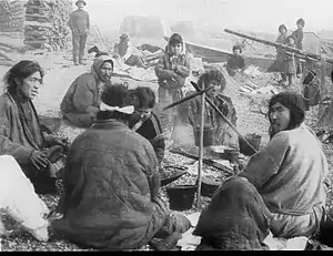Det findes enkelte rapporter om en inddeling af samfundet i to patriarkalske slægter, hvor der blev praktiseret exogami.[25] Det findes også en folklore om konflikter mellem mytologiske skikkelser og også om to højere væsener, som samarbejdede om skabelsen af landet,[24] et tema for shamanens rejse ned i den vandfyldte underverden.[26] Dette tema forekommer i mange kulturer i forskellige varianter.